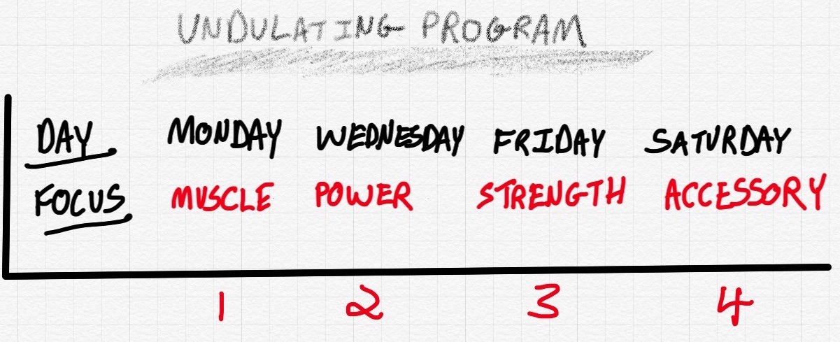 When chatting with her recently about her struggles and her numbers I asked if she’d ever tried undulating periodization. There’s some solid science behind its effectiveness and when applied correctly, it can provide some serious full body strength (and muscle) gains. And, as luck would have it, I had recently put together a 6 week, undulating program for a few of my lifters.